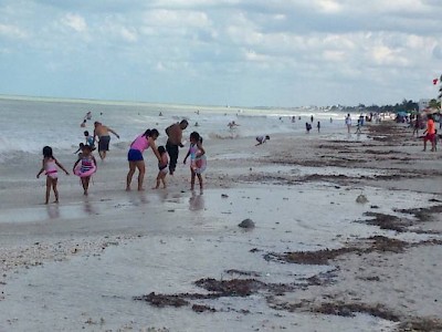 With seas running 40% higher on the beaches of Progreso, the people have been asked to watch their children carefully to make certain they are not caught by outgoing waves. Temperatures are not low enough for the cold to keep beachgoers at home, so many are playing on the beach and at risk for being caught by receding wave action. In addition, the port has been closed to small boats. Those who live at the beach understand this, but visitors might not. For their protection, members of both the local police and military are on hand to help pass the word and to react quickly if the need should arise.