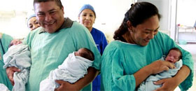 Its two girls and a boy for Daniela del Socorro Domínguez Domínguez (age 37) and Ofelio Farfán Balam (age 41), of Muna. This happy event comes after 5 years of marriage with no children until now. This is also evidence of the success of new health care programs. When Daniela went in for a regular checkup, it was discovered that she had developed preeclampsia, which is common with multiple births. Treated properly, everyone arrived at this happy day in excellent health.