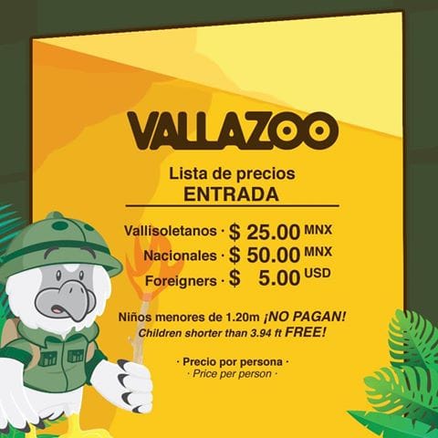 VALLAZOO® Wildlife Reserve began in 2014 to conserve native fauna of the Yucatan and provide a space for people to appreciate these natural treasures. The privately maintained zoo is an initiative of Ing. Gotthold Beutelspacher, founder of civil association Yucatan Silvestre AC). The space features green grass, trees, and areas for families to enjoy a wonderful day. Information on entry fees can be found in the graphic to the right or on the Vallazoo FB page.