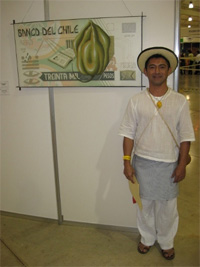 Merida’s own Samuel Barrera has won the El Chile painting contest at the Sixth World Pepper Convention held here in Merida a few weeks ago. His painting cleverly showed a $30,000 peso bill (the amount of the award) with a habanero pepper in the spot where the icon to a national hero would have been. Naomi Barrera Echeverria Noh won in the photography competition with the profile of a native woman with a striking headdress of peppers found only in this region. This is an important contest because Yucatan is now the official home of the habanero pepper (read more about the habanero here) and because it showcased 36 paintings and 28 photographs by artists and photographers from the State of Yucatan. Congratulations to Samuel and to all of his friends, supporters, and fans!