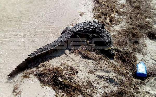 Last week, a group of fishermen spotted a 3.54 m (11.61 ft.) crocodile walking through Playa Santa Clara, Yucatan. It was headed toward the center of town when they captured it for Profepa who will transfer the animal to a safe area.