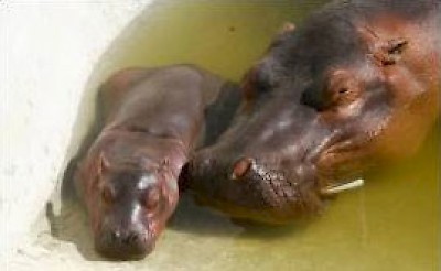 On Friday, Oct. 31, at 8:00 AM, a new baby hippopotamus was born to Gorgo and Pipa at the zoo in Merida. Mother and baby are doing fine. There’s going to be a contest to name the baby, so we will bring you that news when it takes place. In the meantime, Papa Gordo is up on his hind legs, throwing a thundering fit. It seems that this is the first time he has been separated from Pipa since he was rescued from a cruel and abusive circus seven years ago. Not to worry. Gorgo will calm down, the baby will grow, and it won’t be long before the family can be reunited. The new baby weighed in at 45 kilos at birth.