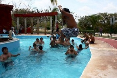 There are two public swimming pools in Merida, one in Parque Ecologico del Poniente and the other in the Aquaparque. These pools will be open every Saturday and Sunday, from 11:00 AM until 4:00 PM, from now until the end of August. Men and boys can swim in shorts, with or without a shirt. Women and girls must wear swim suits or shorts with an appropriate shirt. Swimmers are asked to shower before entering the pool. Food is not allowed in the pool area.