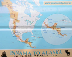 The Global Rally Organization has begun its 2008 classic car ride and this year, they are driving their classic cars over the Inter-America Highway from Panama to Alaska. The participants are driving Jaguars, Mercedes Benz, Aston Martins, Austin Healeys, MGs and others. None of the participants are "younger" that 1970. They have already passed through Izamal and are currently headed west. At some point, they will turn north and pass through the central part of Mexico on their way to the U.S. This ride is not a race, just a way to put others in touch with many historical and interesting places that fans might not have known about, and to spread a little friendship among classic car lovers everywhere. Here's a map of their route all the way to Alaska.