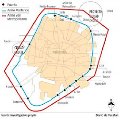 Within 2 years, we are going to have a new road connecting the comisarias (a very small town) on the north side of the city. Public funds are already connecting Caucel, Dzitya and Temozon. Now, private funds will take over and connect Temozon, the Universidad Marista, Cholul, and Chichi Suarez. This will include repairing and widening the access road in front of the university. In the end, this project will create a new semi-circle around the northern section of the Municipality of Merida. You can connect the dots, to see where the roads will go, through Caucel, Dzitya, Temozon, Universidad Marista, Cholul, and Chichi Suarez, on this map.