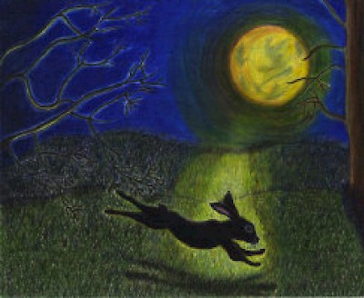 The darkness is sucking all the green trees into itself and I am wondering why I´m standing out here. And then suddenly, out of the night, I see a smallish white thing charging out at me. Its still relatively far away, its fuzzy, ghostly aura glowing in a sea of dark. I can see that its running as fast as it can, which granted is not all that fast -- its moving comically slow considering its fast feet. I would laugh if I wasn´t so scared. Still, I do not know what it is. I think: Possum With Albino Fur. I think: French Poodle with Armadillo legs. I think: WHY AM I THINKING SUCH ABSURD THINGS?...but the creature is still making its ferocious way towards me! I start to back up, I consider running but I´m too worried I´ll step on a snake. My heart is pounding but my curiosity wins over fear and I am immobilized. I´ve stopped chewing my carrot. My eyes start to adjust as the phantom creature gets closer and my night-vision-optical-synaptic thingies click into place: Hey, wait a minute. Its Chuck the Bunny! What the hell is he doing out of his cage??? And how on earth did he get into the wilderness of our backyard??? It´s dangerous out here for bunnies! He passes me up with a whish and leaps into the nearby bushes. Then I spot Charles the Bunny, his sidekick, his boy toy, and he´s charging towards me as well. Oh those bad bad bunnies! How am I ever going to get any sleep if I´m out here rounding up bunnies in the middle of the night like renegade cattle? I imagine myself on horseback with a lasso....and then I look down into my hand.
