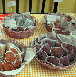 If you don't know, you should know that there is great homemade bread available at the Slow Food Market every Saturday. The baker is Monique DuVal, an expat living here with her husband and two sons. Not only does she have many different flavors of whole-grain breads, sweet breads, loaves full of nuts and seeds, muffins, cookies and more, but she has perfected sourdough bread rounds (our favorite!) and everything is fresh every Saturday morning.
