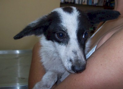 This little dog was found running down the middle of Calle 68 at 9:00 at night. She would have been a meat pie for sure if she wasn't picked up, as she was so frazzled, she wouldn't get out of the middle of the street.