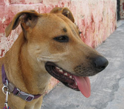 The Mayan word for dogs of uncertain breed is malix (ma-LEESH), and that's what the locals call our dogs. But we suspect there's a bit of cultural bias in their appraisal. Our dogs are (mostly) the coated (hairy) version of the Mexican hairless dog, called Xoloitzcuintle (show-low-eets-KWINT-lee), depicted in pre-Hispanic art as the "dancing dog". These dogs are thought to be the oldest breed of dog in the Americas. While the hairless variety are carefully bred for show, the coated variety are commonly associated with Native Americans, hence the cultural bias. A lot of Mexicans prefer razas finas (breeds) and we have often found ourselves suggesting to a local Meridano that they considering adopting a dog instead of buying one. Finally, this idea seems to be getting some traction in the Yucatan. Still, most Yucatecans look down on street dogs... and when we walk our dogs, they ask us, "Que raza es?" (What breed are they?). We gently reply that these are their much-maligned street dogs (perros de la calle or callejeros) and that when you love and feed them, they look like this!