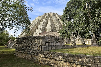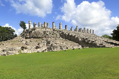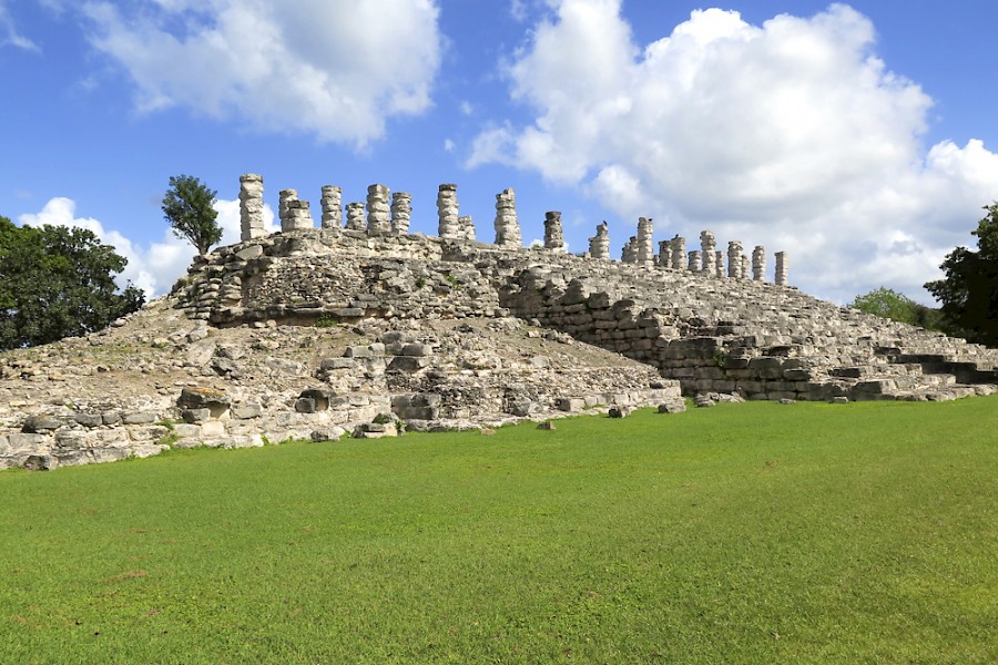 The better part of a year passed, and it was time for our son to return for his annual visit. This time we decided to explore the Maya ruins at Aké and Dzibilchaltún. Both sites were impressive. Aké was small and intimate. Dzibilchaltún was sprawling and contained features we had not seen at other sites. The cenote (pictured in the banner above) at the site was different. We could walk straight from the land surface into the water. There was a Catholic chapel built in the center of the ruins between 1590 and 1600, indicating the Maya were still using this site at that time. In addition, the sacbé (white road) leading to the Temple of the Seven Muñecas (dolls) may be the best-preserved sacbé in all of Yucatán. It was impressive!
