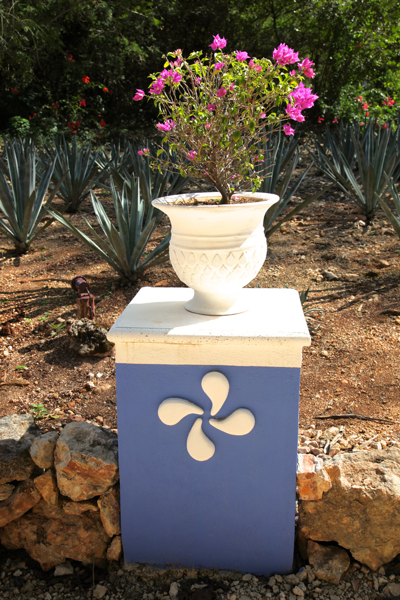 After we returned to the hotel, we visited the Chocolate Museum that is located within short walking distance of the hotel. We found the tour to be extraordinarily educational and interesting. On the path to the museum’s entrance, we noted pots of flowers with the strange symbols that were on the hacienda gateposts. What did they represent? No one at the museum could tell us.