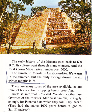 Looking through the documents revived our curiousity about the changes that have happened in Yucatan travel over the last fifty years and we started investigating. Much has changed since the seventies in Yucatan, of course, but so much amazingly remains the same.