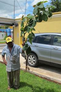 We have purchased many of our yard and patio plants from street vendors. We have also started a number of trees, including a beautiful Flor de Mayo, by simply breaking a branch off of a friend’s tree and sticking it in a pot with good soil or directly into the ground. In the beginning all of the leaves dropped off. We figured that as long as the branch remained green and it was properly watered, it would eventually sprout new leaves and create an established root system. We were well rewarded for our patience. This method is similar to the concept of “living fences” where the fence posts eventually become trees, and if you look, you can observe these “living fences” in several rural areas in southern Mexico.