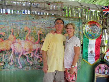 Paul Lawrence and his wife Carol run Tacomaya in Chelem, Yucatan. Besides running this popular hangout, Carol came up with the idea of the FUNKYMARKET, an equally popular event. They have permission to block off the street in between the restaurant & the baseball park, Coca Cola provide the tents and artists & artisans, cooks, bakers & candlestick makers come from miles around to sell their wares. The next one is September 9th from 10 AM to 2:30 PM.