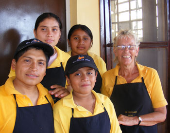 Valerie: No, I did not know much Spanish when I arrived and have learned as I have gone along. I take every opportunity to study and continue studying. The language only becomes a barrier when the staff burst into Maya when it gets busy, but body language is easy to understand.