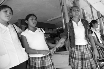 When I need to take picture of a person by themselves, I ask and offer a little money. For example: a man with firewood on his head or a lady at a loom, these people are working for money and a 10 peso coin helps their day. They have something of value to me and it's only right to pay them for it.