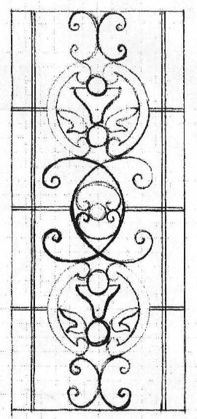 Another common wrought iron feature is called a protector. These are wrought iron grills, often featuring elaborate designs, that cover windows and doors to prevent damage or theft, and sometimes, to prevent a wayward bird or bat from entering the house. Halfway up the interior stairway is a large window facing the backyard that will bring light into the stairwell, and it will sport a large protector.
