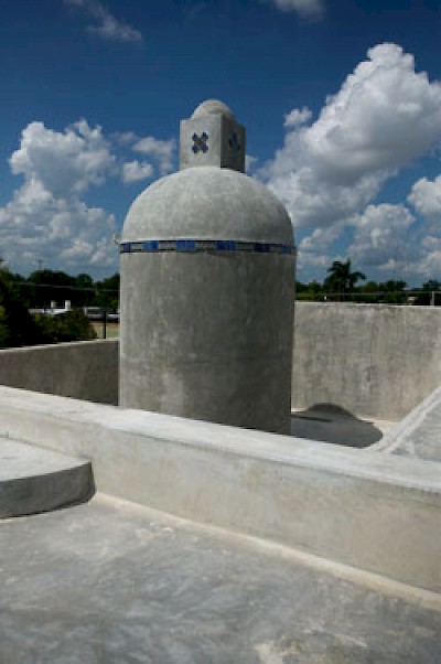 We suggested to our architects that our tinaco should have some sort of enclosure, too, perhaps shaped like a cupola. We never imagined what the result would be and no plans were drawn up. Instead, the request was passed on to the masons, who took it upon themselves to craft what may be Merida’s finest tinaco enclosure.