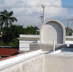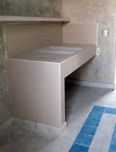 The laundry room has been completed (except for paint and actually installing the washer and dryer). We covered the sink with ceramic tile (which we don't particularly like and don't have anywhere else in the house) as we were advised that it holds up the best under cleaning fluids like bleach. We also installed a "Mexican-style" cement sink, as opposed to a "Yucatecan-style" sink. The Yucatecan style sink is rectangular, with a washboard-like surface on the bottom, and it tips to one side. We've seen them in the most remote pueblos and in the laundry rooms of some of the most expensive homes here. The Mexican-style sink is actually two side-by-side sinks, one for soaking and one with the built-in washboard bottom. Who knew? In any case, they were both available pre-made from the same concrete store that makes columns, molding and other pre-cast concrete and cement items. By the way, these cement items are very inexpensive. As we recall, the sinks both cost about $100 pesos (that's less than $10 US).