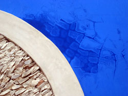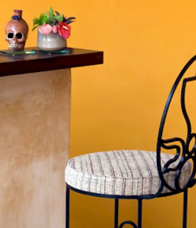 We hired Rolando (cel phone: 044-999-232-3619), a man who had worked with Salvador Reyes Rios and had learned how to do this ancient Mayan finish. Orlando brought only three other men, and spent most of his time supervising their work. They sifted the regular white cement through a type of cheesecloth and then mixed it with ingredients that are a closely-guarded secret (said to include Coca-Cola and Chaac knows what else). Then they spread the chicum paste onto the prepared cement areas: two benches, the bar (pictured above), the outdoor bathtub and the deck of the swimming pool. When they were done, we waited a week for the chicum to dry thoroughly, and then they sanded it by hand to give it a smooth finish. The chicum color is a light tan with mottling that is enhanced with age. We're thrilled to have it in our house and only wish we could have afforded to cover more surfaces with it.