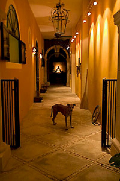 The breeze flows well throughout the ground level of the house as well. There is a pasillo all along one side of the building that is open on both end to the sky. And there is a central courtyard between the office and the main house, which effectively gives the kitchen/dining/living room area open windows on three sides. We don't have air conditioning in this area, and we haven't missed it once this summer. If things get a little hot and stuffy, with a push of a button, our remote-controlled ceiling fans turn on and cool everything off sufficiently to get by. Did we mention we have a swimming pool? If things heat up too much, we just head for the pool.