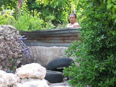 The albañiles (there were five of them that day) had all arrived in a open truck from the nearby town of Uman. This is very typical. Most albañiles live outside of Merida in a small town and they are hired as a team. Someone has a truck and they all pile in the back, often sitting on bags of cal or cemento or whatever else is also being trucked to the job. Unlike in the States, there don't seem to be any enforced regulations about how people ride in vehicles, so they just pack in as many people they need at the destination.