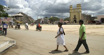 Acanceh (pronounced ah-cahn-KAY) means "dying deer" in Mayan and it's a bustling pueblo about thirty minutes from Merida, following the new highway south from the east-bound 180 toll highway. It is close enough to the White City that it can be considered a bedroom community, and certainly many of its inhabitants work in Merida or in the maquiladoras which pepper the countryside in that area.