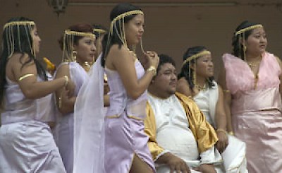The Maya of Acanceh devoted themselves to the Catholic faith with great reverence and have cultivated one of the most elaborate and authentic of the Passion Plays performed around the Yucatan Peninsula during Semana Santa or Easter Week. As all Christians know, the Passion of the Christ is a play performed since the European medieval period that portrays the traditional story of the last hours in the life of Jesus. The Play begins around noon, takes roughly two and a half hours to unfold and is performed at several different locations around the center of town. It begins with the first trial before Pontius Pilate and includes the audience before King Herod, return to Pilate, the release of Barabas, the scourging and humiliation, the Via Cruces (procession though the streets with re-enactments of the twelve stations of the cross) and the crucifixion. If you pay close attention, other events occur on the side, including the suicide of Judas. These scenes are all portrayed in Roman and Middle-Eastern costumes, with serious devotion on the part of the huge Maya cast, so don't be surprised if the overall effect transports you to an unexpected time and place, a juxtaposition of several ancient cultures.