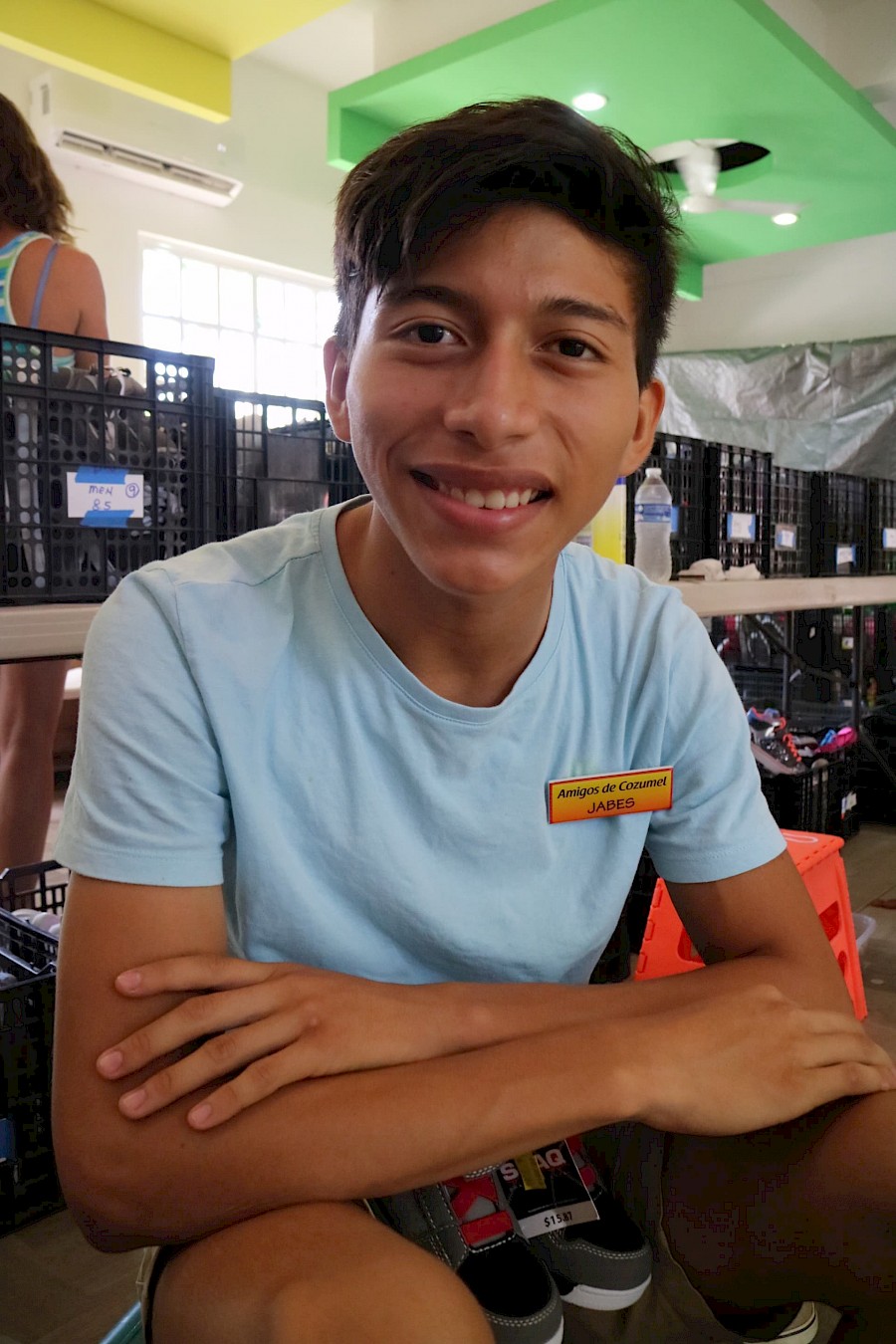 We sat down with Jabes, who helped a couple of excited kids try on shoes. This was his third year volunteering with the group and his friendly temperament and bilingual skills were universally appreciated. “I love seeing the kids smiles when I put their shoes on,” he said.